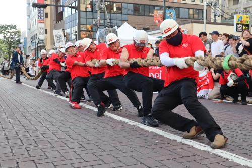 福島市の夏の風物詩、第56回福島わらじまつりが1~3日の3日間、市内中心部で行われた。わらじ踊りや福島わらじ綱引きで建設人が祭りを盛り上げた。駅前通りで開催された福島わらじ綱引きには建設業界から、福島地区管工事協同組合青年部とリンペイが出場。1回戦で福島地区管工事協同組合青年部は、飯坂柔道スポーツ少年大人の部に惜敗。リンペイがLIVEAZUMAと対戦し勝利したが、2回戦で松川柔道マッスルブラザーズに惜しくも敗戦。試合後に互いの健闘をたたえ合った。