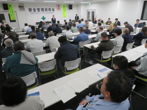 相双管内工事安全推進協議会(会長=佐藤敬相双建設事務所長)は3日、南相馬市の県環境創造センター環境放射線センターで安全管理研修会を開いた。会員企業の安全管理担当者ら約60人が出席。佐藤会長が「事故の未然防止と作業環境の向上に努めよう。研修内容は社内で共有してほしい」とあいさつした。