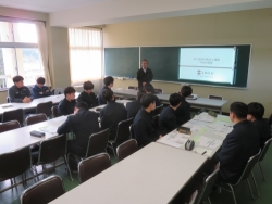 県建設業協会は20日、南相馬市の県立相馬農業高校で建設業の理解促進に向けた座談会を開いた。環境緑地科の2年生12人が参加した。伊藤経介県土木部建設産業室主査が「建設業の役割」について解説。業務内容や地域との関わり、働き方改革など建設業の目指すべき方向性を説明した。
