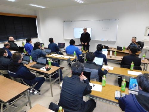 根本理事長が「適正な労務費は、生活や業界存続にかかわる大きな課題。学んだことを会社運営に役立ててほしい」とあいさつした。