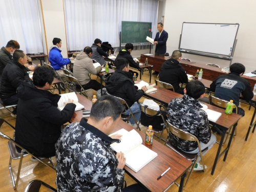 県鉄筋業協同組合(根本勝則理事長)は31日、郡山市の田村公民館で技能検定(学科)準備講習会を開いた。組合員5社から受験予定者12人が参加した。宇内一広副理事長が「普段の現場での頑張りを勉強に充てて、2月8日の学科試験に備えてほしい」と激励した。